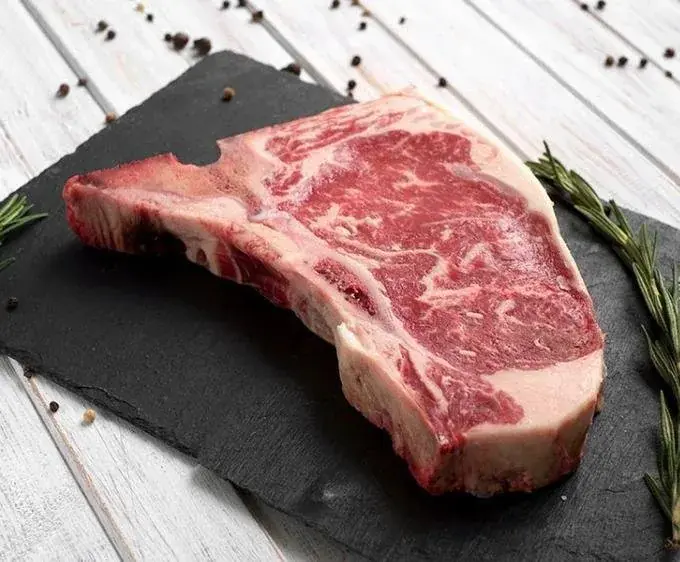 Производится из мраморной говядины с соблюдением международных требований пищевой безопасности. Клаб-стейк — это классический стейк на кости из поясничной части. Клаб-стейк является родственником стейков Портерхаус и Ти-Бон.